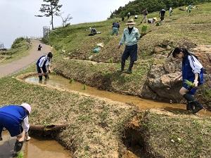 生徒は競いながらも楽しんでごみ拾いを頑張っていました。