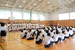 壮行式では、野球部、吹奏楽部、アントレプレナー同好会、美術部、水泳部の壮行式が行われました。