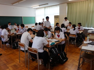 輪島・東陽中学校の生徒と学習交流会を行いました。