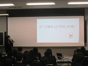 総合的な学習の時間を使って、普通科1年生で小論文講座を実施しました。