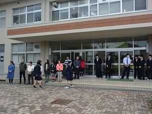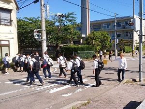 また、輪島市立河井小学校の児童と共に、朝の挨拶運動も行いました。