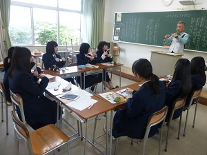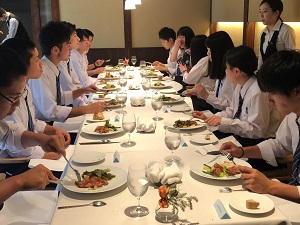 市内のフランス料理店「L'Atelier de NOTO ラトリエ・ドゥ・ノト」さんに、総合学科3年生34名に対してテーブルマナー講座を行っていただきました。