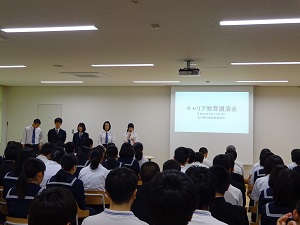 東陽中学校で行われた「先輩に学ぶ会」に東陽中学校出身の3名が参加してきました。