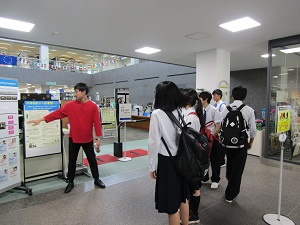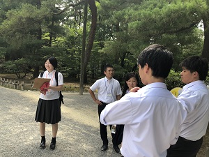 総合学科1~3年生7名が、県の国際感覚育成事業で観光案内の「あかり人」さんより観光案内をしていただき、ガイド方法などを学びました。