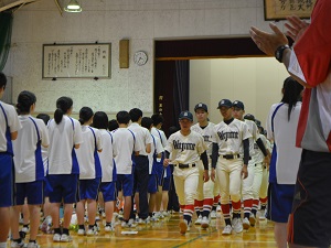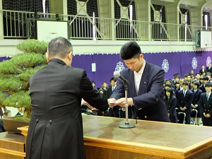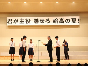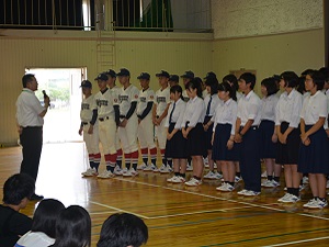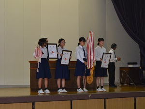 和太鼓部、陸上部、ソフトテニス部の表彰伝達式が行われました。