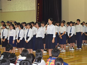 伊那市で行われた全国総文という初めての大きな舞台にみんなとても緊張していましたが、演奏後、多くの方々から「感動した」「涙が出た」との感想をいただくことができました。生徒たち自身がその大舞台を楽しみ、自分達らしい一番の演奏をすることができたからだと思います。応援して下さった保護者の皆様、地域の皆様、そして卒業生の皆様、本当にありがとうございました。