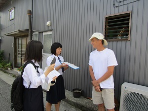 総合学科3年生2名が、観光協会と連携し情報発信を行うため、市内のコンビニや飲食店、市役所などにポスター掲示のご協力をお願いしに行きました。
