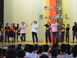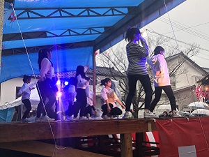 輪島市河井町の重蔵神社で行われた曳山祭宵宮ステージに、ダンス部が出演させていただきました。