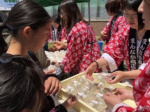 輪島朝市感謝祭に総合学科2年生10名が金沢大学の学生5名と共にボランティアとして参加しました。