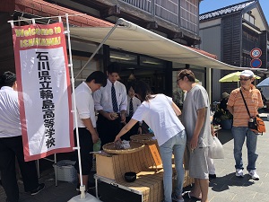 七尾特別支援学校輪島分校の生徒と合同で輪島朝市販売実習を行いました。