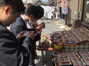 11月3日に行われる地域探究学習「ポスターセッション」のため、英語班が輪島朝市でインタビューを行いました。