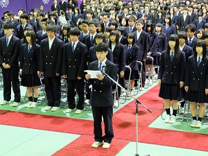 平成30年度入学式が行われ、総合学科40名、普通科100名が入学しました。