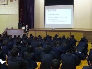 金沢星稜大学の佐野浩洋先生をお招きし、「地域資源を生かしたまちづくり」講演会を総合学科2年生を対象に行いました。