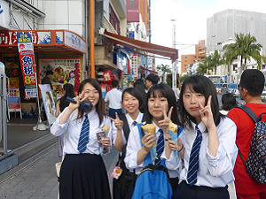 県の「商業を学ぶ高校生の国際感覚育成事業」で、総合学科の1~3年生8名が輪島市の観光案内を行いました。