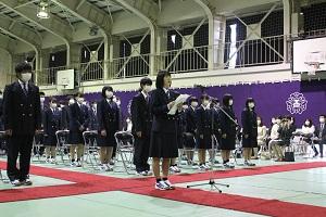 式では上野校長が「校訓の『誠実・覇気・努力』を胸に、新入生一人ひとりが自分なりの一番を目指してほしい」と式辞を述べ、それに対して新入生代表が「現状に満足することなく、将来をよりよくするために努力し続ける」と力強く宣誓しました。