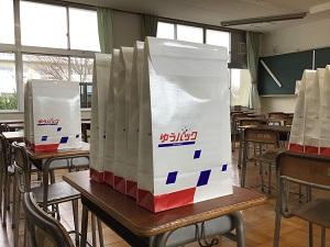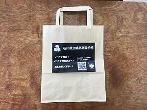 この紙袋は、7月1日からレジ袋が有料化されたことを受け、それまで使用していたビニール袋に代わるものとして、3年1組の生徒全員でデザイン案を出し合って作成したもので、7月31日(金)の販売実習からの使用を予定しています。