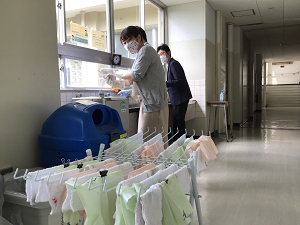 本校は長年にわたり輪島朝市での販売実習を行っていますが、輪島朝市を訪れる人が新型コロナウイルスの影響で減っていることから、「地域に元気を与えたい」との思いでマスクの作成と配布を企画したものです。