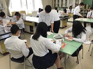 本校総合学科の3年生が朝市販売実習で使用する紙袋を作成しました。