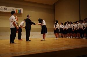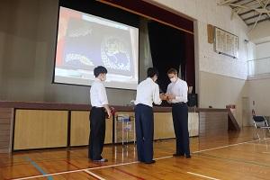 8月5日、国際ロータリークラブの交換留学生として、昨年の9月から本校に在籍していたキーガン君の送別会が行われ、上野校長から修了証、生徒代表から記念品とメッセージカードが手渡されました。