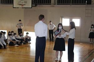 会では、生徒代表が「1年間あっと言う間だったが、一緒に過ごせて本当によかった。もっと一緒に思い出を作りたかった」とメッセージを述べたのに対し、キーガン君は「この学校でみんなと一緒に勉強ができて、日本のことがもっと好きになった。本当にありがとう」と感謝の気持ちを伝えていました。