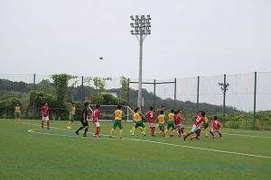 金沢市民サッカー場で行われた試合で、本校サッカー部は七尾高校を破り、2回戦進出を決めました。