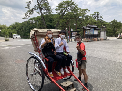 ひこにゃんグッズを買ったり、占いをしたり、アイスを食べたり、人力車にのったり、、