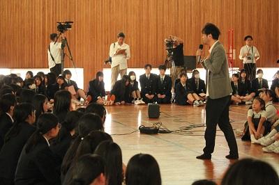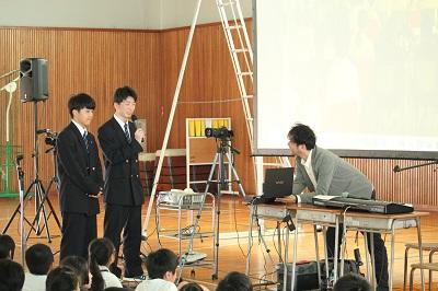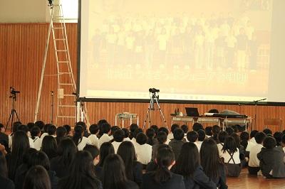 合唱曲「フェニックス」のお披露目会がありました。この曲は、弓削田健介さんが、被災地の子供たちの声を紡いで作ってくださった合唱曲です。生徒たちは、この日のために授業やお昼休みを使って一生懸命練習に取り組んできました。輪島市の小学4年生そして、オンラインで繋いだ全国の皆様と共に緊張しながらも、心を込めて一つの歌を創り上げることができました。
