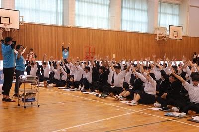 意識しながら行うトレーニングをして、生徒たちは「難しい!」と言いながらも楽しく参加していました。