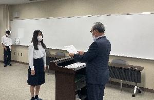 9月7日には会議室で認証式が行われ、当選または信任を受けた5名の生徒に上野校長から認証状が手渡されました。
