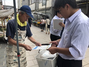 11月3日に行われる地域探究学習「ポスターセッション」のため、英語班が輪島朝市でインタビューを行いました。