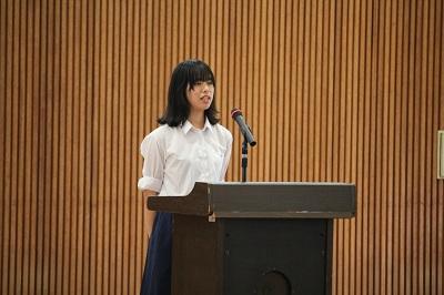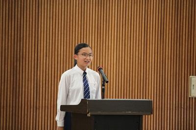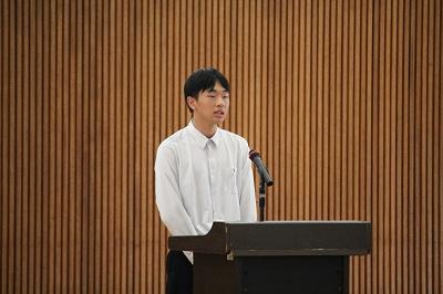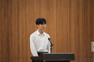 令和7年度後期生徒会役員選挙が行われ、立候補者5名が全校生徒の前で演説を行いました。