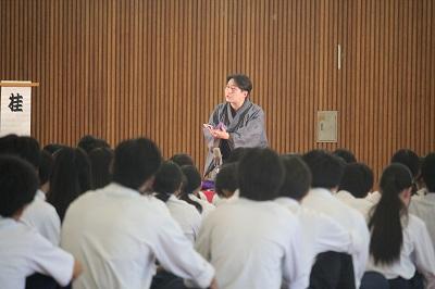 巧みな話術と温かみのある笑いで生徒・教員ともに大いに楽しませていただきました。