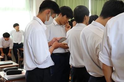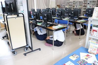 訓練では、緊急地震速報の後、机の下などで安全を確保し、その後,津波警報が発令されたという想定で、放送の指示に従って速やかに学校の3階に避難しました。また、避難後には自身のスマートフォンを使って安否確認の入力を行い、緊急時における情報伝達の流れも確認しました。