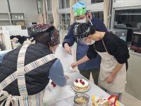 まずはケーキ作りです。グループごとにデザインを考えて、協力して取り組みました。どのグループも創意工夫あふれるおいしそうなケーキができましたね。