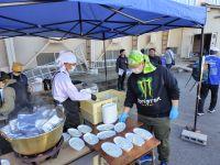 輪島高校に到着したら、カレーライスで昼食です。調理は両校の生徒や教職員、保護者の皆様が協力して行いました。