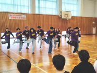昼食の後は本校体育館で、「がんばれ輪島!!スペシャルステージ」が行われました。金城大学ダンス部、大東文化大学全學應援團の皆様によるパフォーマンスや、加賀聖城高校の「ふるさと石川うぉーく」の活動報告が行われました。