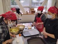 郷土の食材をいかしたメニューの開発は本校の特色ある学習のひとつです。調理室は現在、震災の影響で水道とガスが使えない状況ですが、「それでも何かできることをやろう!」と先生も生徒もアイディアを出し合って、実現させることができました。
