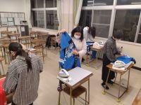 2年生が震災復興イベントで着用する法被(はっぴ)のアイロンがけをしました。