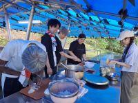 鹿島少年自然の家では、野外炊飯や植物を使ったエコバッグ作り、ピザ作りなどを体験しました。