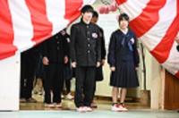 後期生徒会役員の任命式の後、前期生徒会長から後期生徒会長に生徒会旗を引き渡しました。