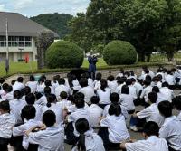 7月3日(水) 災害等の非常時から身を守ることの意義を理解し、必要な行動の仕方などをつける身に付けることを目的として、避難訓練を行いました。地震発生の後、3階理科準備室からの出火という想定で、全校生徒が玄関前に避難しました。加賀市消防本部山中分署の方からは、「速い避難でよかった」というお言葉をいただきました。また、消火器の使い方なども学びました。今年の1月1日のことを忘れず、いざという時に命を守る行動がとれるよう、教師も生徒も心しておかなければなりません。