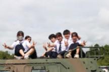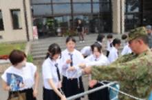 7月12日(金) 2年生が自衛隊の方々から、職業・防災についての講話、車両の見学や災害や救助で有効なロープの結び方の体験をさせていただきました。自衛隊の概要から、1月1日の能登半島での地震での救助や支援について教えていただいた後、実際に使われている車両の見学をしました。生徒は実際の車両を目の前にして、触ったり乗ったりしながら自衛隊について興味深く学んでいました。