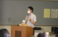 7月16日(水)の昼休み、図書・ボランティア委員会の主催で、おすすめの本を紹介する書評ゲーム「ビブリオバトル」を行いました。3名の生徒が自分のおすすめの本の面白さやおすすめのポイントなどを制限時間内で紹介し、最後にもっとも読みたい本を聴衆が投票しました。40人以上の聴衆が部屋いっぱいに集まり、本に対する質問もたくさん出て、とても盛り上がった企画となりました。