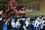 9/20・21(土日)のこいこい祭りに本校生徒がさまざまな形で参加しました。2日目には、本校3年生が保護者や大獅子睦会・連獅子会のみなさんとともに、大獅子みこしを担いで町を練り歩き、吹奏楽部は美術部が制作した看板が飾られたステージで演奏し、祭りに華を添えました。