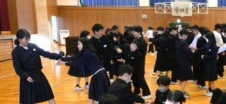 9月18日(木)の6限目、地域の方のご指導の下、全校で体育祭で披露する新こいこい踊りの練習をしました。どの学年の生徒も踊った経験はありますが、1年ぶりの踊りで最初は振り付けを忘れている生徒もいました。しかし何度か踊るうちに完全に思い出し、最後は輪になって楽しそうに踊っていました。地域の方からも上手だとお褒めの言葉をいただきました。