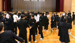 9月19日(木) 6限目に地域の伝統文化を学ぶ機会として、新こいこい踊りの練習を実施しました。新山中節保存会の方々を講師としてお招きし、生徒たちに新こいこい踊りの振り付けを丁寧に教えていただきました。