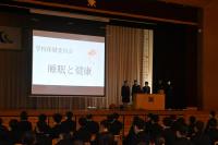 11月13日(水) PTA給食試食会が行われた後、学校保健委員会を開催しました。保健委員会の生徒たちが「睡眠と健康」についてまとめたプレゼン発表を行い、途中には1・2・3年生が一組となったグループで保健委員長が示したテーマに沿って話し合い、考えを交流して深めました。最後には、学校医、学校薬剤師、栄養士、PTAなどの方々から、良い講評をいただきました。明日からそれぞれの生徒が、自分事として睡眠時間の確保に努め、心身ともに健康に過ごしてくれることを願います。