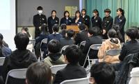 2月1日(木) 来年度の前期生徒会役員が決まり、9名の役員それぞれが所信表明演説を行いました。現在、地震の影響で体育館が半面しか使えないため、Meet(オンライン)での演説でしたが、次期生徒会役員はカメラの前で堂々と思いを語り、どの教室でも真剣に聞き入る生徒たちの姿がありました。