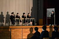 4月9日(火)生徒会執行部による、新入生歓迎会が行われました。中学校生活の楽しい行事や、先輩からのアドバイスなどを劇として披露し、たくさんの笑いが起こっていました。1年生は、楽しく中学校生活の流れをつかんだと思います。