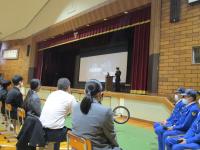 11月26日(水)、大聖寺警察署、石川県警交通機動隊の方々に来ていただき交通安全教室を実施しました。自転車に乗るときの注意点やR8.4.1から導入される交通反則制度についての説明をしていただきました。罰則のあるなしに関わらず、交通ルールを守り安全運転に心がけてほしいです。